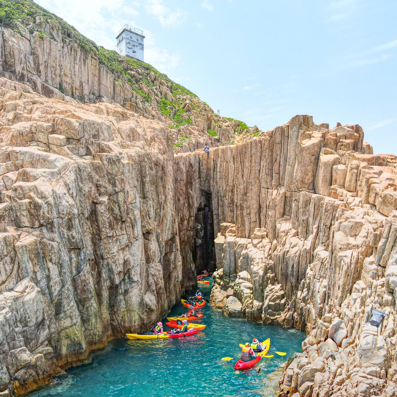 Experience the thrill of kayaking through the Ninepin Group, part of Hong Kong's UNESCO Global Geopark. Paddle past stunning hexagonal volcanic rock columns, explore dramatic sea caves like Big Stove Arch and the Hong Kong longest sea tunnel cave - Three Dragon Mouth, and marvel at unique formations on North and South Ninepin Islands.
